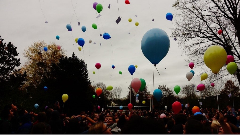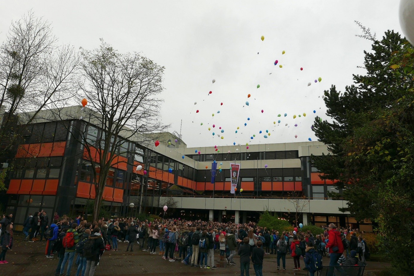 100 globos de colores se elevaron elegantemente por el cielo alemán. Pero no iban solos, iban acompañados de los deseos de los alumnos/as que les acompañaron en su viaje.