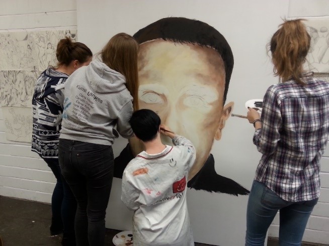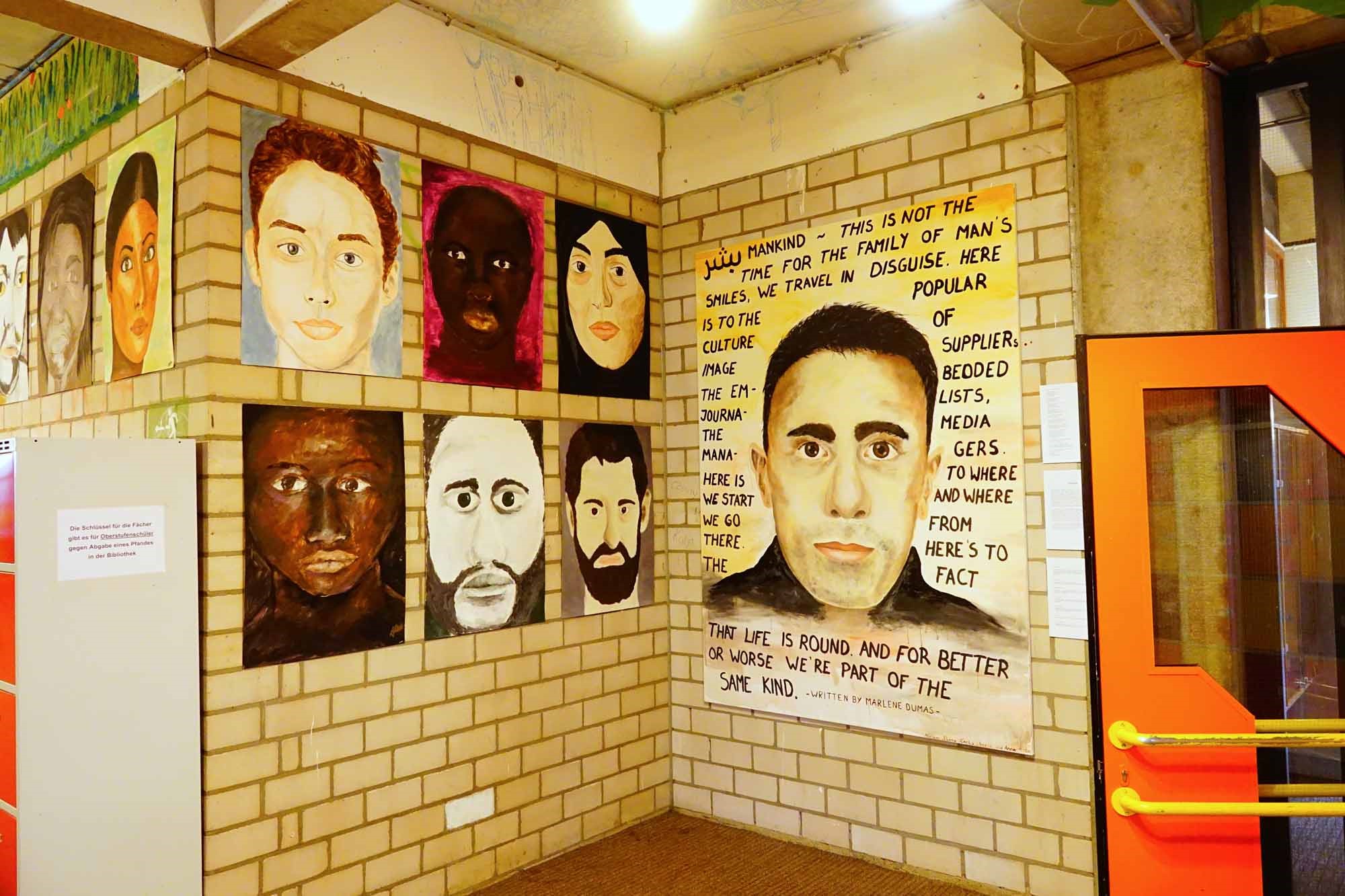 Además, se hizo un cartel impresionante contra el racismo y la exclusión en la asignatura de Dibujo artístico de los cursos de Bachiller de arte y se colgó en el vestíbulo de la escuela.